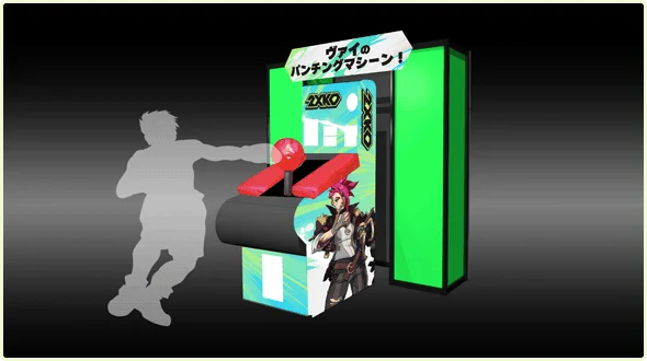 「真っすぐいってぶっとばす」ヴァイをテーマにしたパンチングマシーンが登場します。スコアに応じて、ここでしか手に入らない2XKOオリジナルグッズをプレゼント!